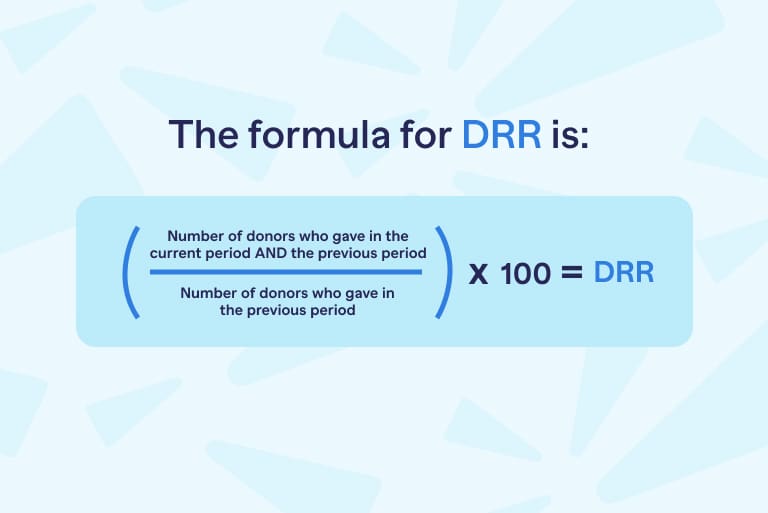 DRR = (Number of donors who gave in the current period AND the previous period÷ Number of donors who gave in the previous period) × 100