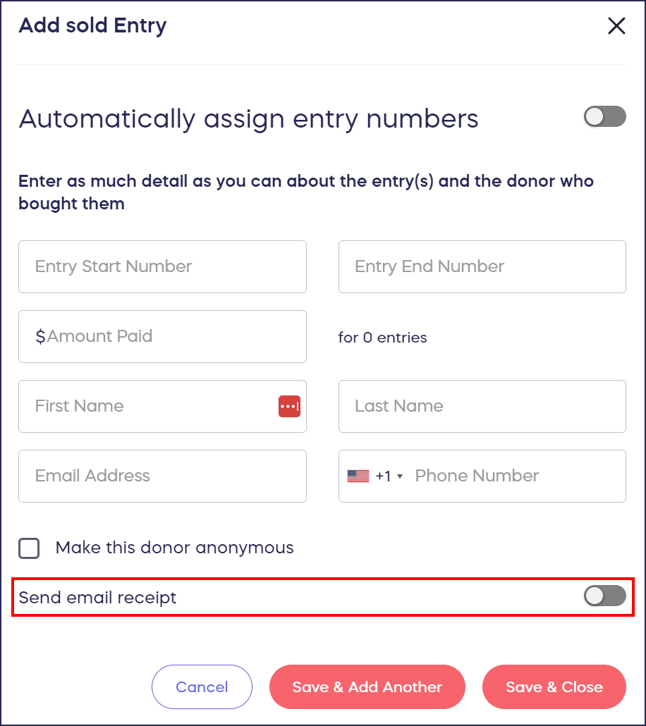 Add offline entry purchases to your Raffle or Sweepstakes entry records so donors can participate offline.