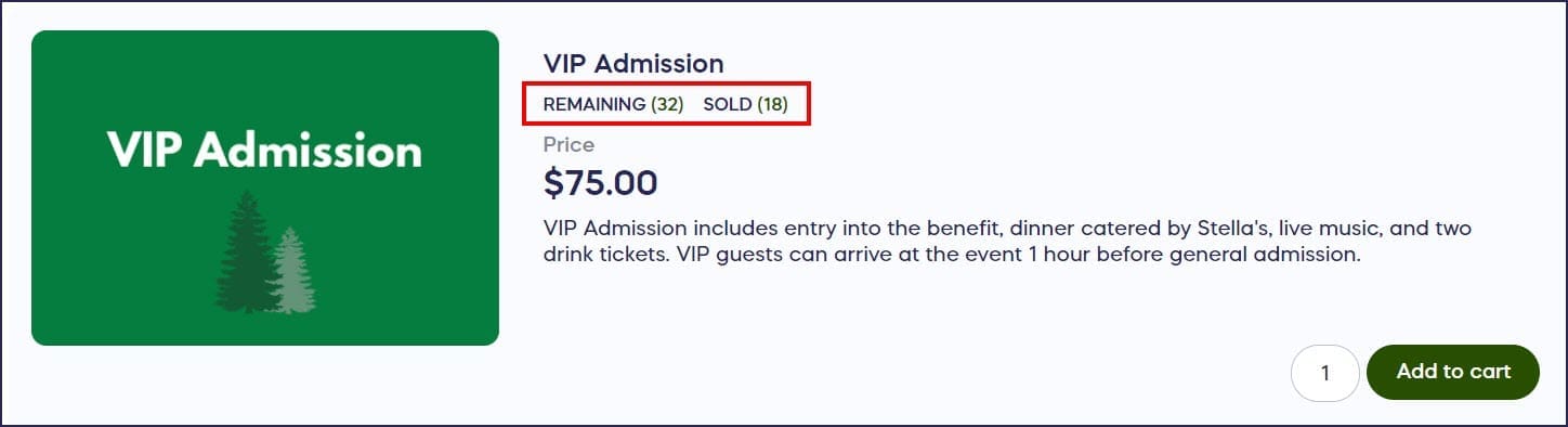 Note that once the quantity limit has been reached, the Tickets or Tables will still be visible on your Campaign Page, but the purchase option will no longer be enabled: