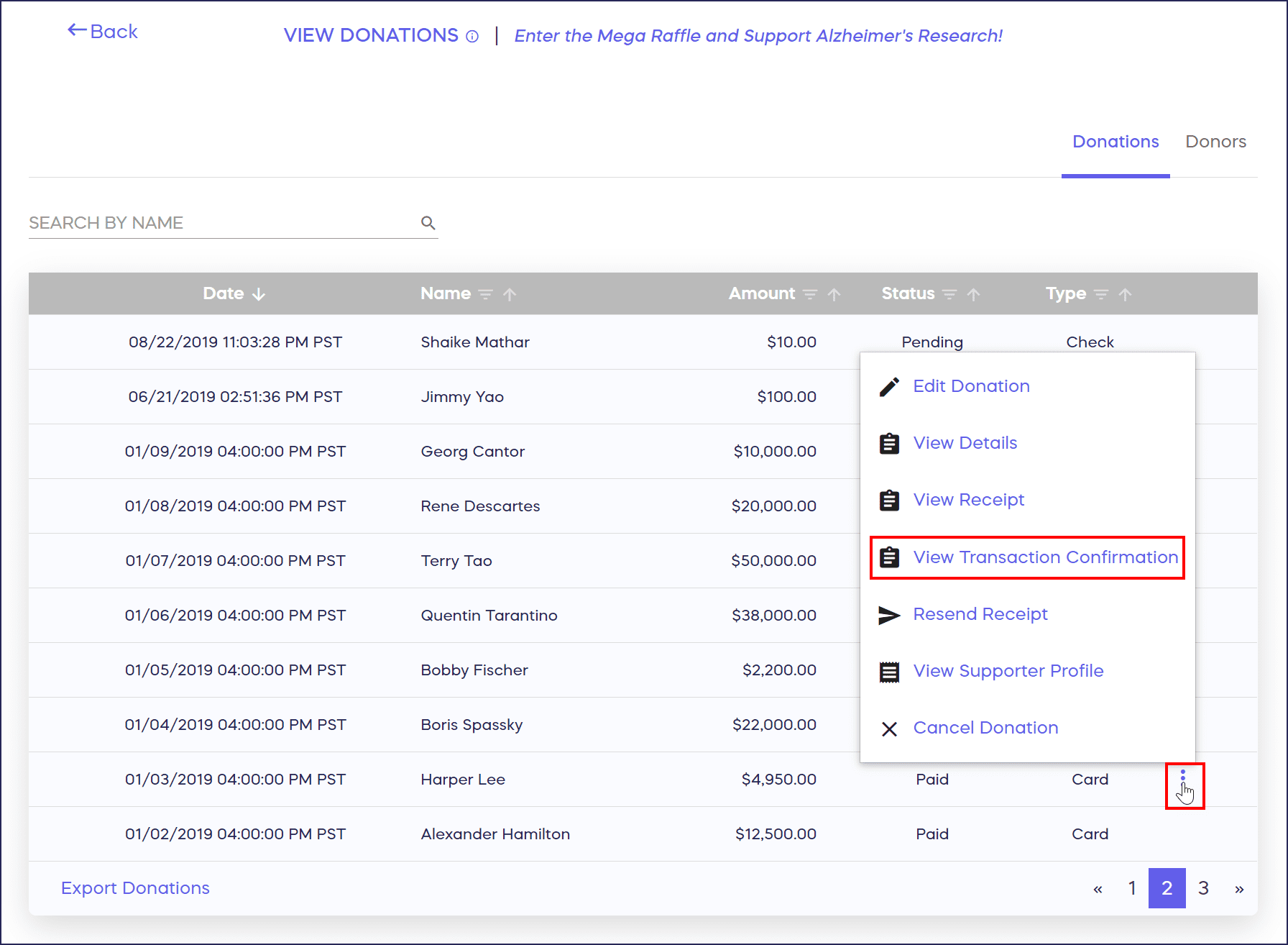 Manage your Donor Feed by editing or removing the comments left by donors.