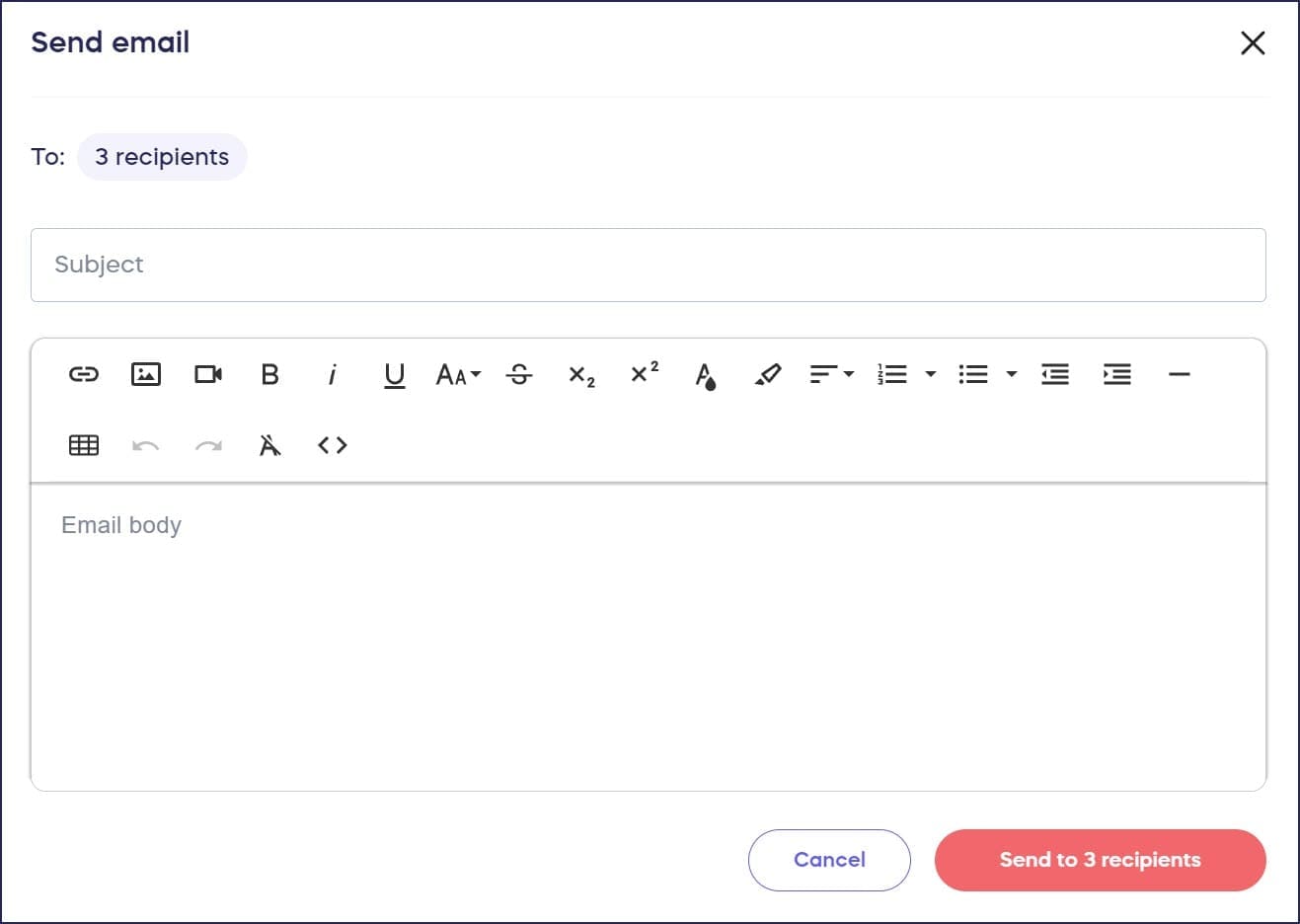 - Write your email, then select Send to xx recipients (the number will vary depending on the number of donors you selected):