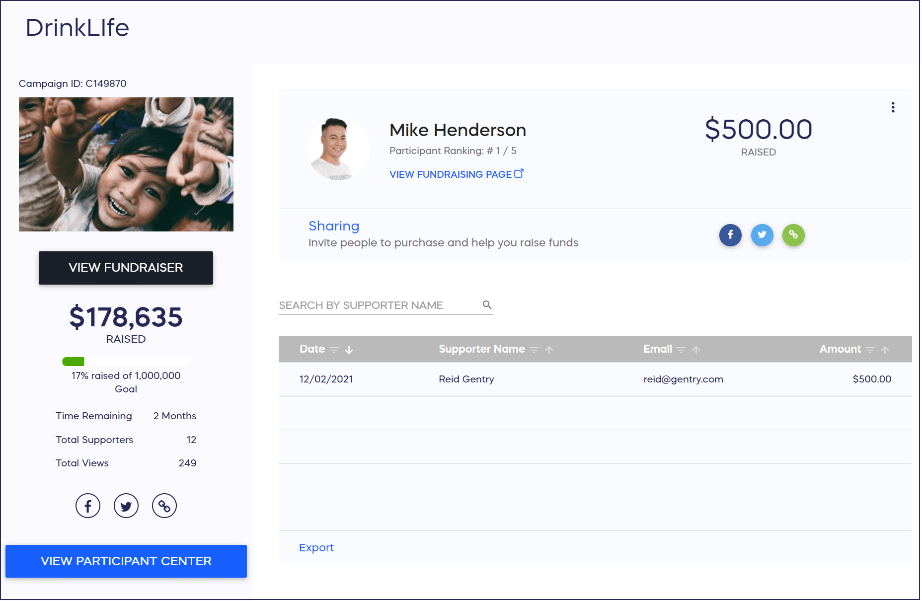 When you become a Participant* or Team* member for a RallyUp fundraiser, you’ll get access to a Dashboard that allows you to do the following: