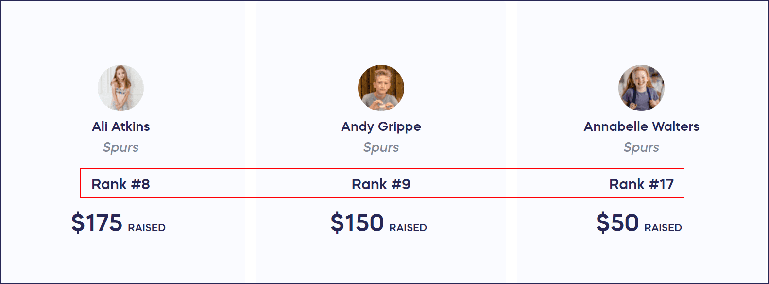 If you choose not to hide the rankings, this is how they’ll be displayed on the campaign page (colors may differ depending on your campaign settings):