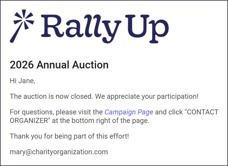 When you run a Raffle, Sweepstakes, or Auction through RallyUp, you can select how you’d prefer to notify non-winner(s):