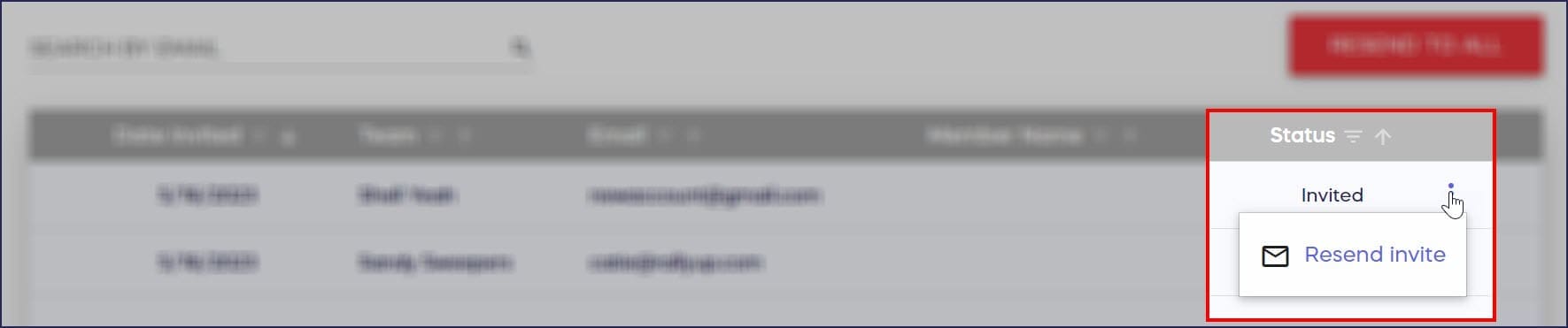 - Go to the row with the person you’re looking for, hover over it, and click on the three-dot icon that will appear on the far right. Then, select Resend Invite: