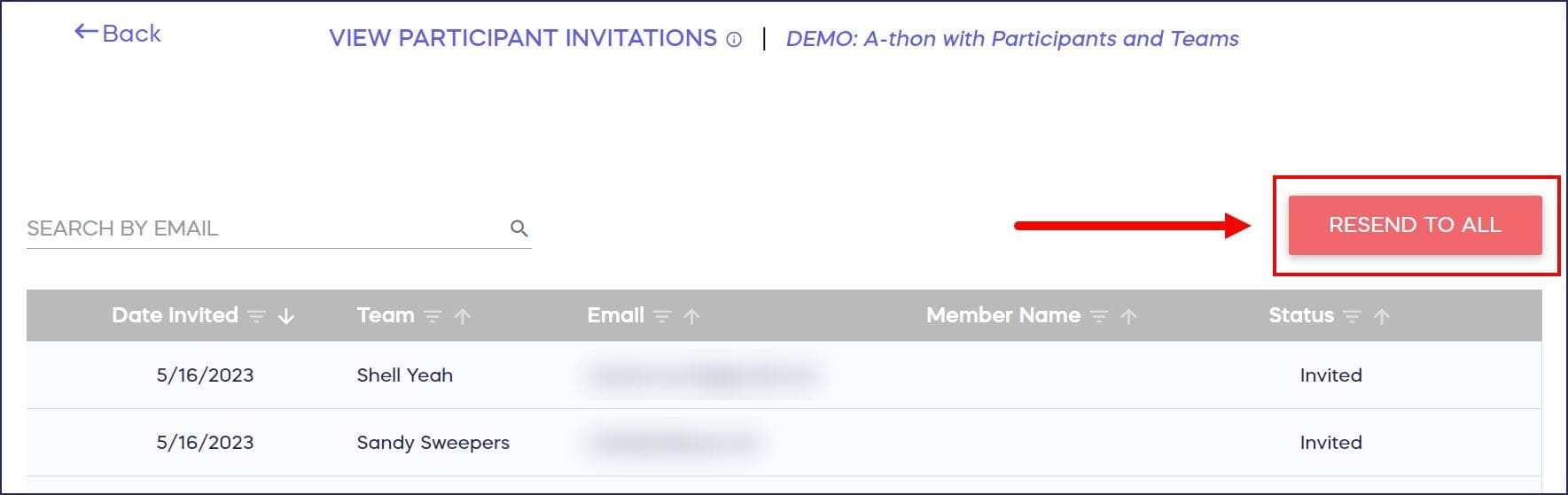 Or, to resend invitations to all invitees, select RESEND TO ALL: