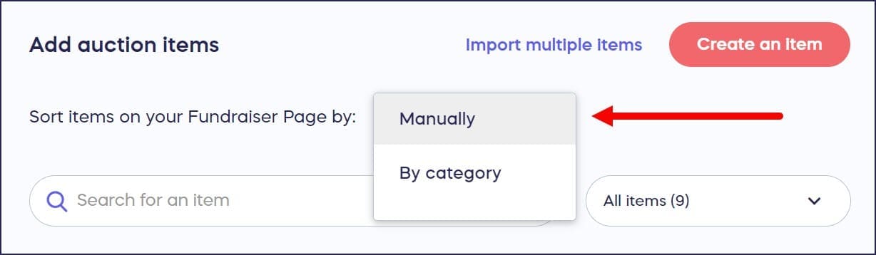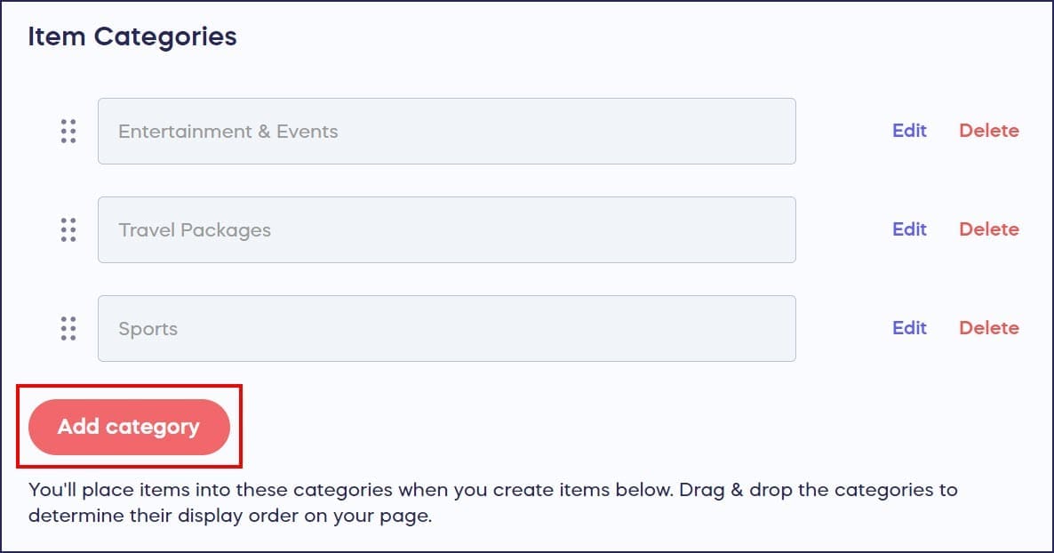 Help donors find what they want by sorting prizes, tickets, and other items into categories.