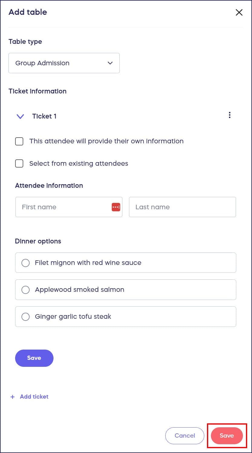 Note: When you manually add a Ticket or Table purchase to your records, the attendee(s) will not be charged. If you need to charge an attendee for their offline Ticket or Table purchase, you will need to go to your online Campaign Page and process the payment through checkout.
