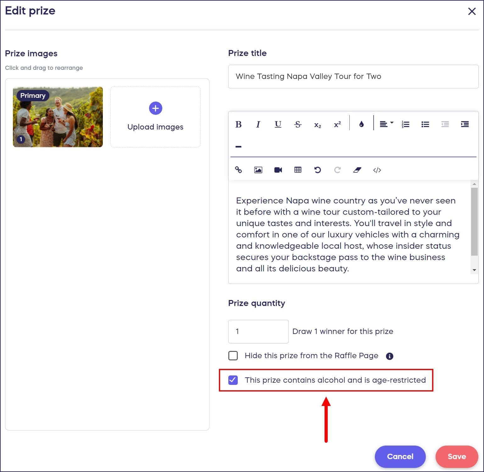Learn guidelines for offering alcohol or a firearm as a prize.